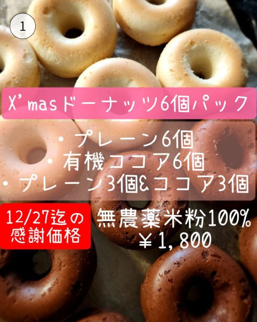 2025年のクリスマスは、昨年に続きグルテンフリーのブッシュドノエルとショコラケーキの2種類が登場。さらに 約28cmの米粉ピザ もクリスマス向けに用意されており、パーティーにもぴったりのラインナップになっています。