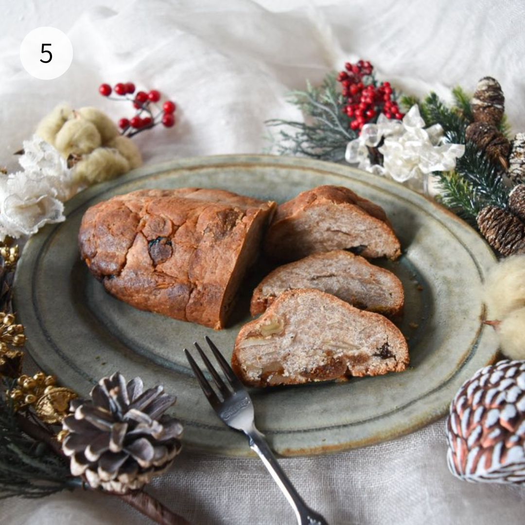 砂糖を使わず甘酒のやさしい甘さで仕上げた、乳製品・卵・小麦・不使用のグルテンフリー&ヴィーガンシュトーレン。